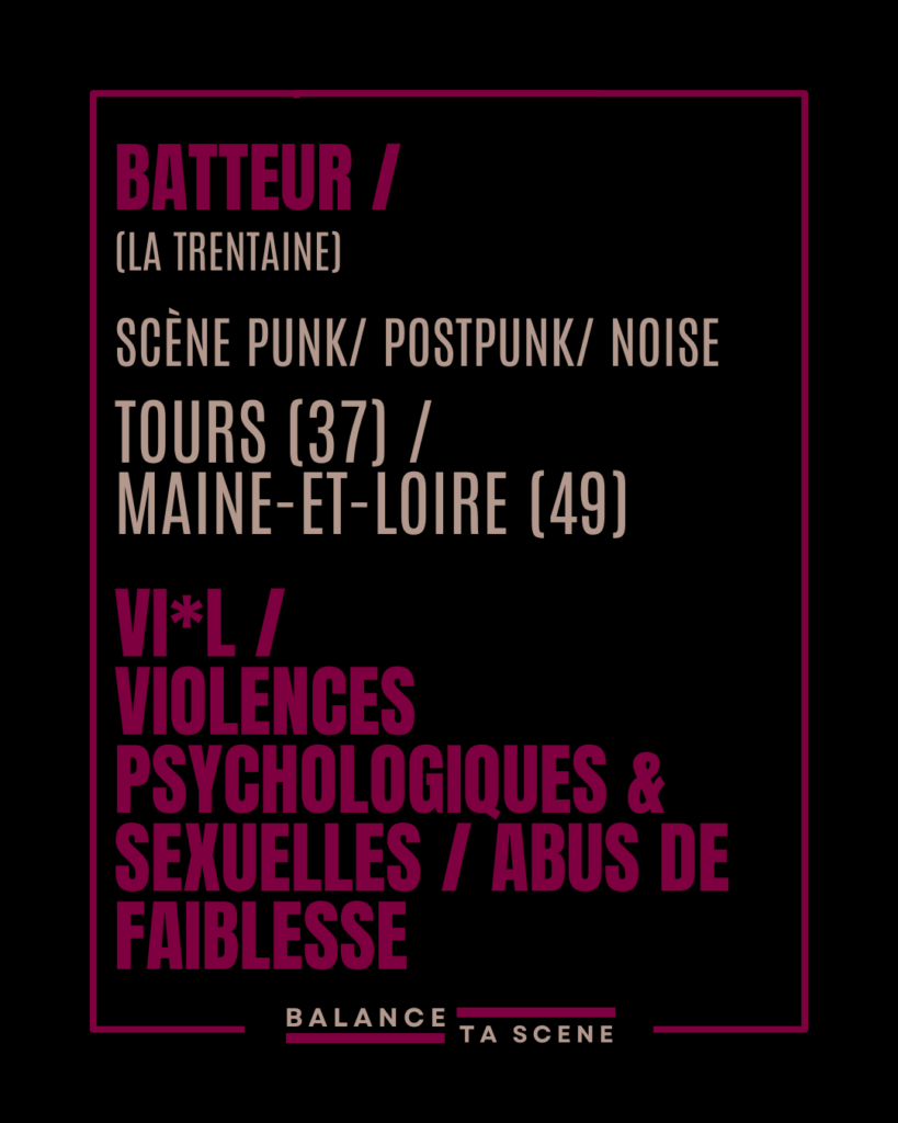 Balance Ta Scène respecte l’anonymat des victimes ainsi que de tous les protagonistes en rapport avec chaque témoignage reçu.Veuillez consulter LA CHARTE avant de nous contacter.Si vous êtes victime ou témoin, contactez-nous via notre formulaire anonyme (lien dans la catégorie … Continuer la lecture