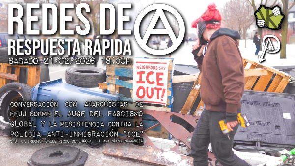 [Madrid] SÁBADO, 21/02/26, 18h – CS LA BRECHA, C/ Picos de Europa, 11 <M> Nueva Numancia REDES DE RESPOSTA RÁPIDA: CONVERSA COM ANARQUISTAS DOS EUA SOBRE A ASCENSÃO DO FASCISMO GLOBAL E A RESISTÊNCIA CONTRA O ICE (POLÍCIA INTERNACIONAL DE IMIGRAÇÃO). A situação global e nosso cotidiano estão sendo submetidos a uma ascensão do autoritarismo e do fascismo que cresceu exponencialmente nos últimos anos. O panorama de mudanças políticas que testemunhamos nos obriga a tomar posições claras e decisivas para confrontar o que parece inevitável: um fascismo global com uma agenda altamente coordenada e definida, onde as pessoas mais vulneráveis […]