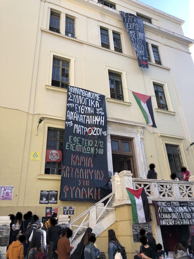 Χθες το βράδυ, Παρασκευή 14.11.2025, αναρτήσαμε πανό στην Καμάρα, ως ένδειξη αλληλεγγύης στα δύο άτομα που δέχτηκαν ομοφοβική επίθεση την προηγούμενη εβδομάδα στην Θεσσαλονίκη. Βρισκόμαστε σε μία εποχή που τα άτομα με μη ετεροκανονικές ταυτότητες, έπειτα από δεκαετείς αγώνες ενάντια στις διακρίσεις που υφίστανται, διεκδικούν την ορατότητα τους στον κοινωνικό ιστό. Κοινώς διεκδικούν το αυτονόητο, να μπορούν να εκφράζουν την ταυτότητά τους ή την τρυφερότητά με τους συντρόφους τους στο δημόσιο χώρο όπως ακριβώς και τα άτομα που εμπίπτουν στα πρότυπα της ετεροκανονικότητας. Και ενώ επιτέλους αυτό γίνεται αποδεκτό από μεγάλη μερίδα της κοινωνίας, ταυτόχρονα συντηρητικές και φασιστικές μειοψηφίες προσπαθούν […]