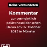 Keine Verbündeten: Kommentar zur vermeintlich palästinasolidarischen Demo am 07. Oktober 2025 in Münster (Antifaschistische Linke Münster)