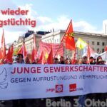 „Nie wieder kriegstüchtig! Stehen wir auf für Frieden“ – Gewerkschafter:innen zeigen Gesicht ! 4. Oktober 2025 Peter Vlatten In der Presseerklärung des Vorbereitungskreises „Nie wieder kriegstüchtig! Stehen wir auf für Frieden“ zu den Demonstrationen in Berlin und Stuttgart am 3.Oktober 2025 heisst es: „Friedensbewegung setzt deutliches Zeichen gegen die zunehmende Kriegsgefahr und Militarisierung der Gesellschaft. Vereint gegen Völkermord, soziale Verrohung und Sozialabbau und für das Ende von Kriegen und Hass. 20.000 Menschen in Berlin und 15.000 in Stuttgart haben heute ihr Bekenntnis für Frieden und Diplomatie, gegen Krieg und Hochrüstung auf die Straße getragen. Der Vorbereitungskreis „Nie wieder kriegstüchtig! Stehen…