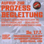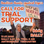 [ EN AR DE ] ⚲ 17 July 2025 | Amtsgericht Tiergarten (Turmstr. 91) 8:30 a.m. rally 9:00 a.m. two trials at the same time! During the brutal eviction of the Bundestag camp on April 26 2024, our comrade Ahmad was forcibly removed. Now, he’s facing charges of resisting arrest. At the same time, another person who participated in the lecture hall occupation at the FU is being tried. We will support both comrades inside the rooms and with a rally in front of the court. No matter how hard they try, they will never silence us! خلال عملية الإخلاء […]