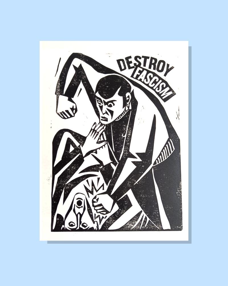 Les jours fériés ça a du bon, ça m’a permis de terminer la gravure Destroy Fascism, inspirée d’une gravure sur bois de Frans Masereel. C’est dispo dans le shop dès à présent !