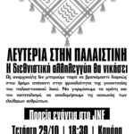 Τετάρτη 29/10 στις 18:30, Καμάρα ΛΕΥΤΕΡΙΑ ΣΤΗΝ ΠΑΛΑΙΣΤΙΝΗ – ΔΕΝ ΥΠΑΡΧΕΙ ΕΙΡΗΝΗ ΧΩΡΙΣ ΔΙΚΑΙΟΣΥΝΗ ΤΟ ΕΛΛΗΝΙΚΟ ΚΡΑΤΟΣ ΕΙΝΑΙ ΣΥΝΕΝΟΧΟ ΣΤΗ ΓΕΝΟΚΤΟΝΙΑ ΠΟΥ ΔΙΑΠΡΑΤΤΕΙ ΤΟ ΚΡΑΤΟΣ ΤΟΥ ΙΣΡΑΗΛ ΕΝΑΝΤΙΑ ΣΤΑ ΚΡΑΤΗ, ΤΟΝ ΚΑΠΙΤΑΛΙΣΜΟ, ΤΟΝ ΠΟΛΕΜΟ ΚΑΙ ΤΟΝ ΕΘΝΙΚΙΣΜΟ – Η ΔΙΕΘΝΙΣΤΙΚΗ ΑΛΛΗΛΕΓΓΥΗ ΤΟ ΟΠΛΟ ΤΩΝ ΛΑΩΝ Libertatia, συλλογικότητα για τον ελευθεριακό κομμουνισμό *Η ανακοινωμένη ανοιχτή διαχειριστική συνέλευση του Ελευθεριακού Στεκιού Victoire θα ξεκινήσει μετά το τέλος της συγκέντρωσης.