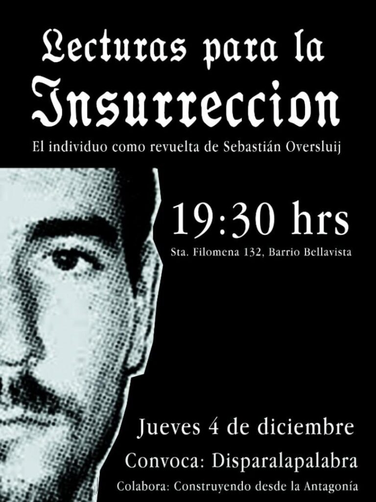 Lecturas para la insurrección – Conversatorio en torno al escrito «El individuo como revuelta» del compañero Sebastián Oversluij (Espacio Fénix)