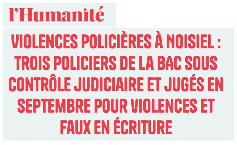Violences policières à Noisiel : trois policiers de la BAC sous contrôle judiciaire et jugés en septembre pour violences et faux en écriture – L’Humanité (Anti.MÉDIA)