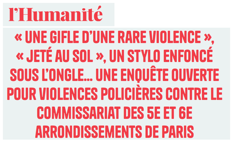 « Une gifle d’une rare violence », « jeté au sol », un stylo enfoncé sous l’ongle… Une enquête ouverte pour violences policières contre le commissariat des 5e et 6e arrondissements de Paris – L’Humanité (Anti.MÉDIA)