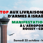 Rendez-vous samedi 25 octobre à 14h au Terminal 2BAccès RER B – Aéroport Charles-de-Gaulle 2 Après deux ans d’une offensive génocidaire sur Gaza, la France continue de se rendre complice en poursuivant son commerce d’armement avec Israël. Des composants essentiels au fonctionnement d’armes israéliennes létales continuent d’être livrés mois après mois depuis les ports et aéroports français. L’aéroport de Roissy-Charles-de-Gaulle est utilisé de manière récurrente pour transporter du matériel à usage militaire vers Israël, qu’il soit produit en France ou à l’étranger. Ce transit perdure malgré les interpellations des travailleur·ses et de leurs syndicats qui refusent d’être rendu·es complices de […]