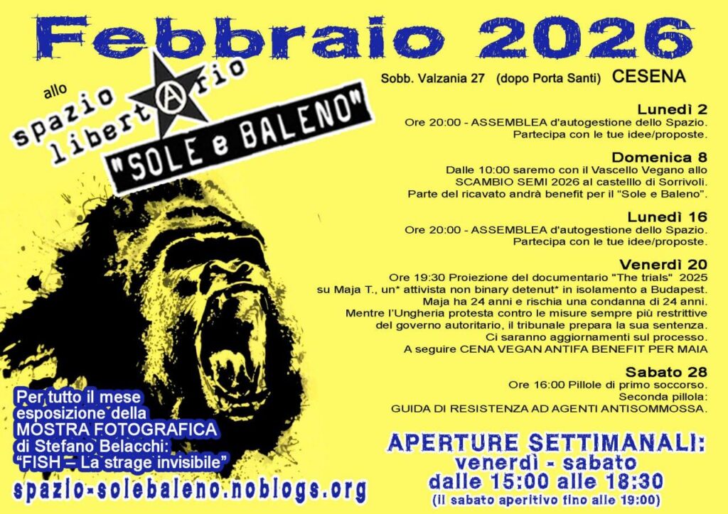 Riceviamo e diffondiamo: VENERDI’ 30 GENNAIO 2026 allo Spazio Libertario “Sole e Baleno”, Sobborgo Valzania 27, Cesena. Ore 19:30 – Cena Vegan BENEFIT PER LA LOTTA IN SUDAN. Ore 20:30 – ECHI DAL SUDAN IN LOTTA. In collegamento con un compagno dal Sudan.