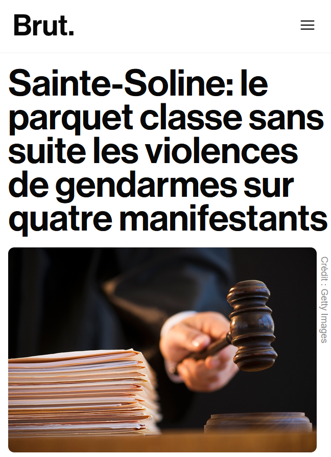 07/12/2025 Extraits Dans un communiqué, le procureur de Rennes, Frédéric Teillet, explique avoir décidé de classer sans suite les violences des gendarmes soit parce que les blessures ont été causées par un tir « conforme » (un cas), soit parce que les tirs non conformes ont pu être justifiés par le « contexte ultraviolent », soit parce que leurs auteurs n’ont pas pu être identifiés. (…) Pour Me Chloé Chalot, avocate des quatre blessés graves qui avaient porté plainte à la suite des violences subies lors de la manifestation, cette décision « est à la fois très décevante et très peu surprenante au vu de […]