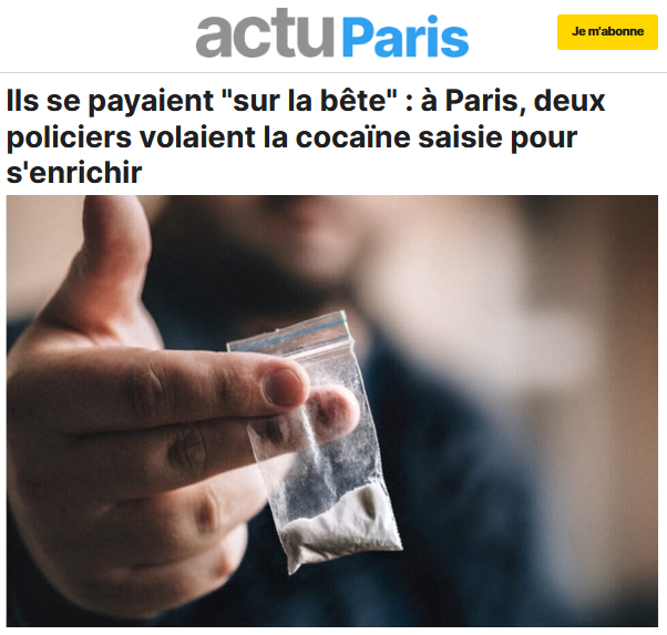 Ils se payaient « sur la bête » : à Paris, deux policiers volaient la cocaïne saisie pour s’enrichir (Anti.MÉDIA)