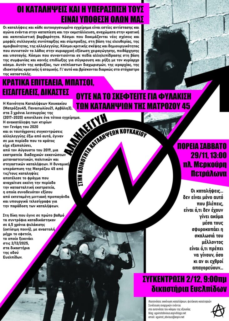 Nuestro compañero anarquista Nikos Romanos se encuentra en prisión preventiva, que se ha extendido a un total de 18 meses, a pesar de la falta de pruebas. A pesar de que el fiscal recomendó su liberación, el Consejo Judicial prorrogó su detención una vez más. En la práctica, la presunción de inocencia se ha invertido, lo que refleja un cambio más amplio hacia una justicia punitiva y visual. Lo que se supone que es una medida excepcional —la prisión preventiva— se ha transformado en un castigo antes del juicio, carente de un proceso justo. Ni culpables, ni inocentes.En guerra siempre […]
